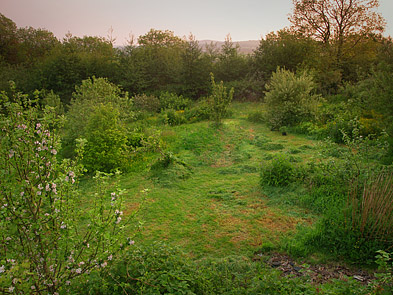 The bare east field in 2009, first trees planted, just visible in the foreground.
