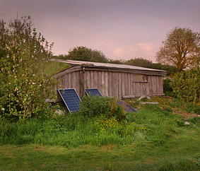 The buidlings are linked up to PV solar for lights and car-charger socket for laptops and other electrical items; there is plenty of south facing aspect for such a system. The hydro-electric is owned by all 9 Lammas properties and supplies up to 3 kw of 240V electric from a leat off of the river Gafel. The hydro-electric turbine is a valuable asset, providing such ample amounts of unmetered off-grid electric, especially during the winter, rainy months when it is most welcome. We used it for power tools, washing machine, electric oven and the hoover. A smart load control system in the workshop can automatically switch on and off selected appliances around the plot to divert surplus power to background uses such as space and water heating. The total amount of power varies with water levels, over the last four years our consumption has been around 10,000 units/year or about £1,700 worth. This provided for nearly all our heating, and water heating needs.The generation of renewable electric also yields FITs payments 4 x a year; this is nominally fed back into the infrastructures. The turbine itself requires regular maintenance and repair as befits a complex, powerful beast such as itself. Simon was active in keeping it going and instrumental in its design and maintenance.