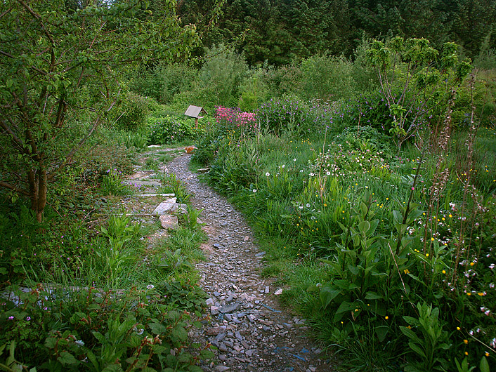 All the plants that live at Berllan Dawel were chosen for their resilience and low maintenance. They spread and propogate easily and form the backbone of the stock for the perennial plant nursery. Unlike a conventional nursery, the plant stock is sited in guilds around the shrubs and fruit trees so that they provide their benefits in situ, rather than being raised in monocultures. There are 6 keyhole beds in front of the Undercroft for raising berry cuttings from the forest garden for retail or barter. The edible, perennial nursery was the basis for our low impact income, in addition to running training courses on natural building and permaculture design.