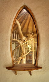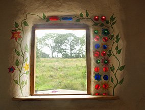 - Lime render on walls lets the straw breathe, much lower embodied energy than cement