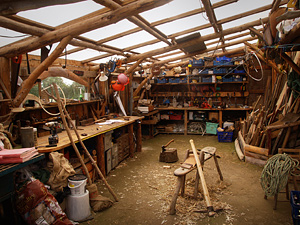 WorkshopOn our plot, polycarbonate roof for light and rainwater harvesting |